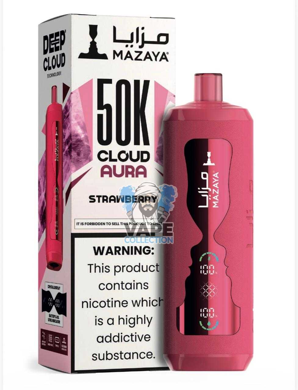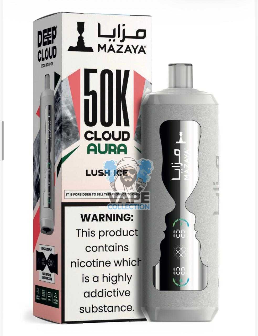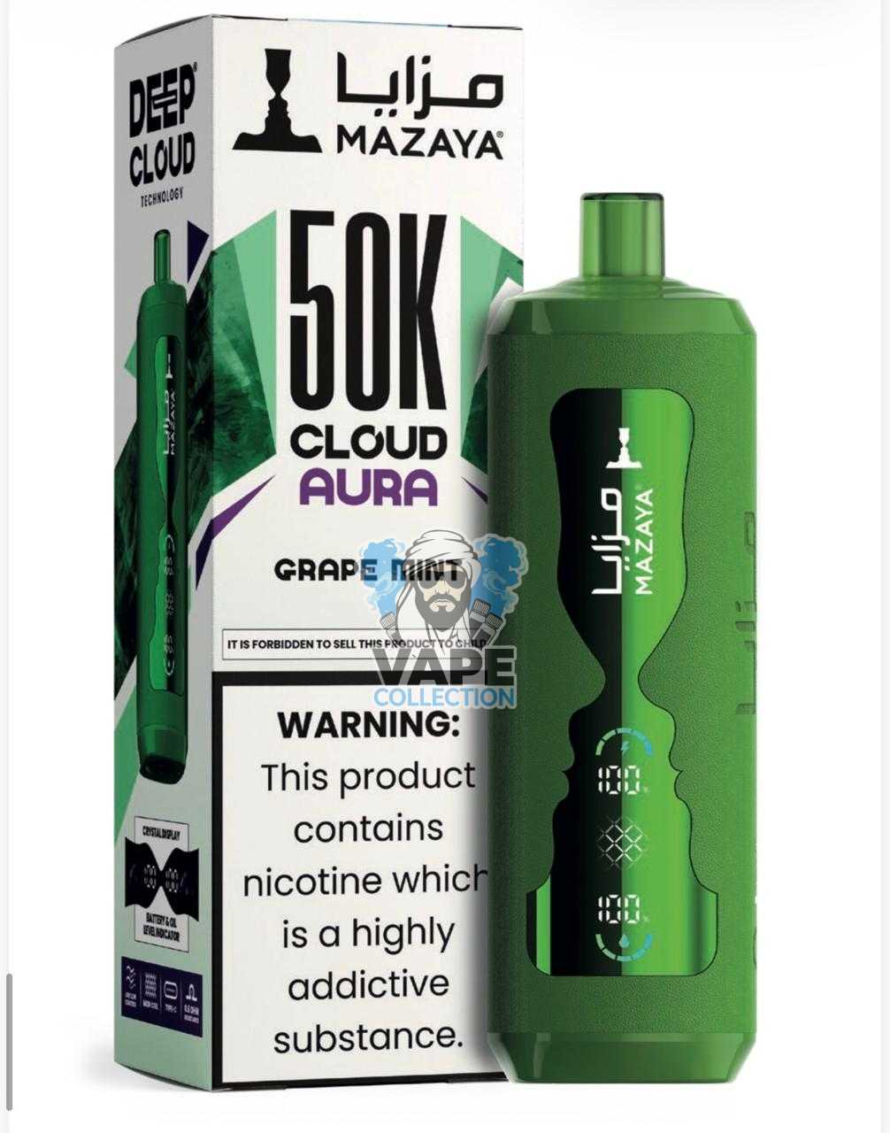 - Embrace a Superior Vaping Journey: Order your Mazaya Cloud AURA 50000 today and enjoy a long-lasting, low-nicotine, premium experience delivered swiftly to your door.