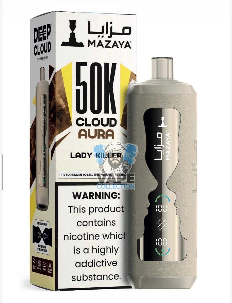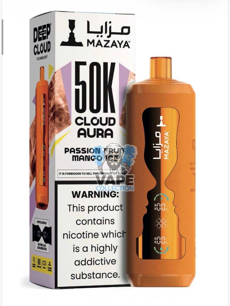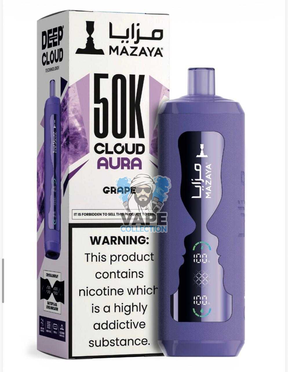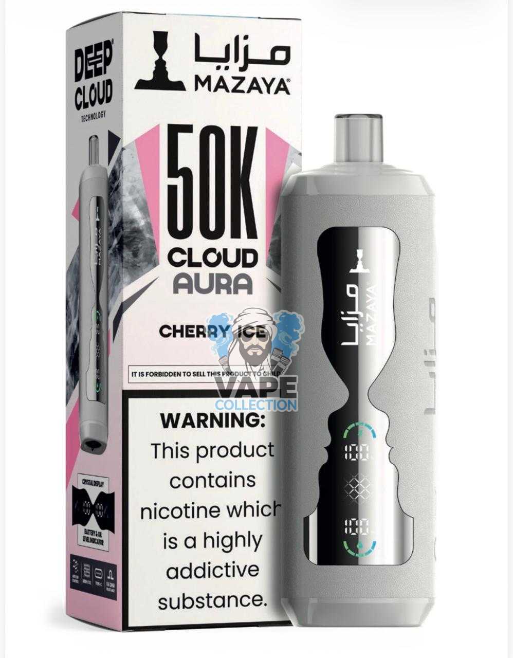 - Embrace a Superior Vaping Journey: Order your Mazaya Cloud AURA 50000 today and enjoy a long-lasting, low-nicotine, premium experience delivered swiftly to your door.