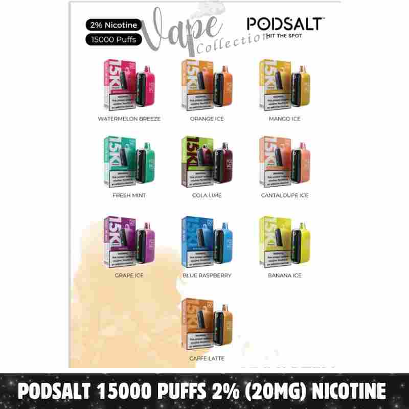 - Flavours Variety: With several distinct flavors, Podsalt 15000 Puffs 2% offers a perfect option for every preference.